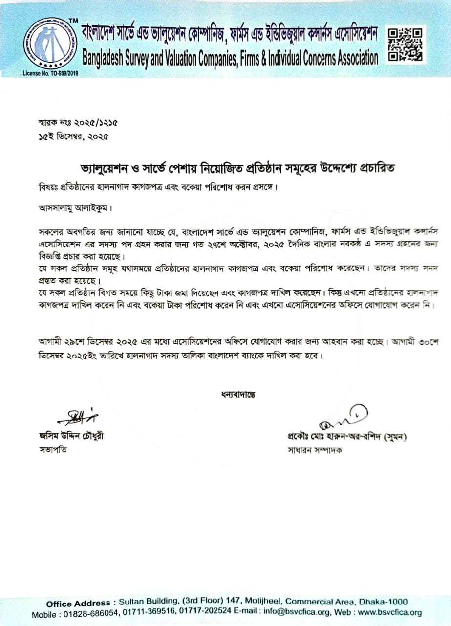 প্রতিষ্ঠানের কাগজপত্র হালনাগাদ ও বকেয়া পরিশোধ প্রসঙ্গে। December 28, 2025 admin Blog 0 Comments Share This Twitter Facebook LinkedIn Email admin Related Posts ইজিএম, মেম্বারশীপ সার্টিফিকেট প্রদান এবং ইফতার মাহফিল প্রসঙ্গে নোটিশ আমরা শোকাহত দেশের গণতান্ত্রিক অভিপ্রায় আপোসহীন নেত্রী সাবেক প্রধানমন্ত্রী বেগম খালেদা জিয়ার বিদায়ে আমরা শোকাহত। বিজয় দিবসের শুভেচ্ছা This Post Has 0 Comments Leave a Reply Cancel replyYour email address will not be published. Required fields are marked *Name * Email * Website Save my name, email, and website in this browser for the next time I comment. Comment *